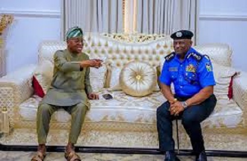 Published March 3, 2026 at 500 × 325 in Oyetola hosts new Police IG Disu, seeks institutional collaboration.